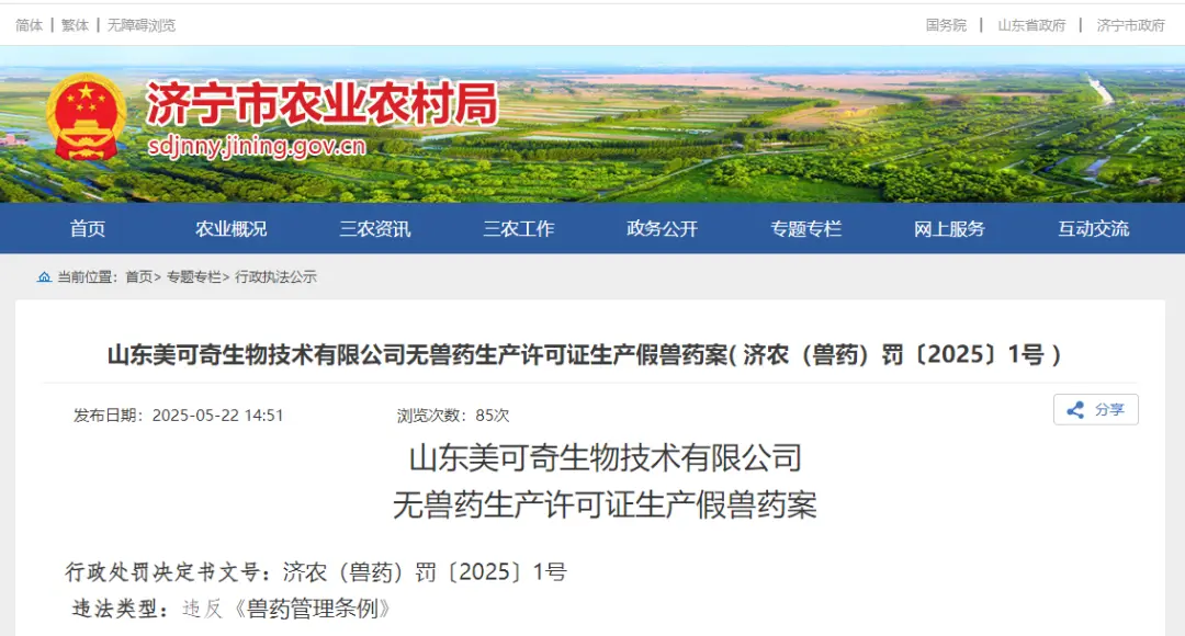 近日,一份由山东济宁市农业农村局发布的行政处罚决定书,将一家名为山东美可奇生物技术有限公司的企业推到了舆论的风口浪尖。